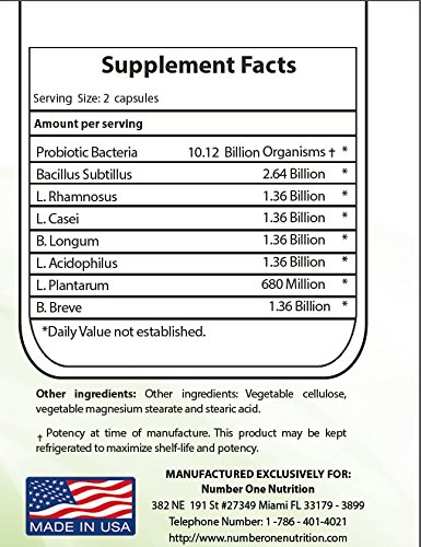 RELIEF FROM DIGESTIVE DISTRESS! Do you suffer from digestive discomfort? Bloated belly? Acid reflux? Fatigue? Do you want to improve your immune system and manage your weight? If you answered “YES” to any of these, try Number One Probiotic. Two capsules a day with a light meal and you are on your way to a healthier life! Our product is made with TOP QUALITY ingredients, is 100% safe and has no known side effects. Made in the USA at a FDA approved manufacturing facility.