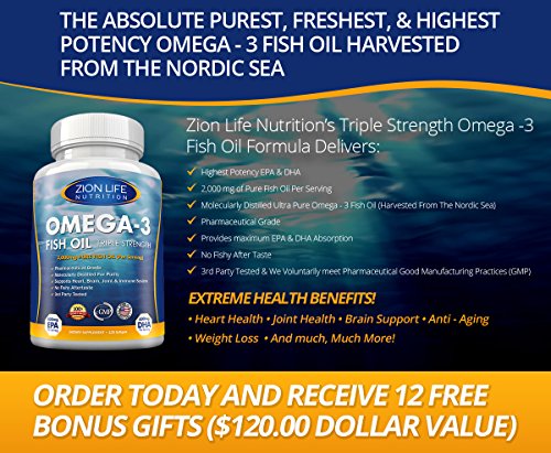 ✔ 2,000 MG EPA/DHA OMEGA 3 FISH OIL – 800MG EPA/ 600 MG DHA Per Serving