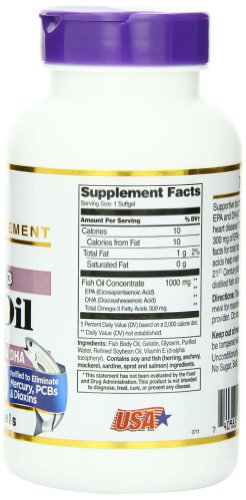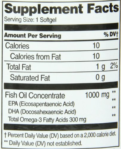 Supportive but not conclusive research shows that consumption of EPA and DHA omega-3 fatty acids may reduce the risk of coronary heart disease. One serving of Fish Oil provides 300 mg of EPA and DHA omega-3 fatty acids. (See supplement facts for total fat and saturated fat content). These omega-3 fatty acids help maintain cholesterol levels which are within normal range. Fish Oil contains the highest quality molecularly distilled fish oil concentrate.