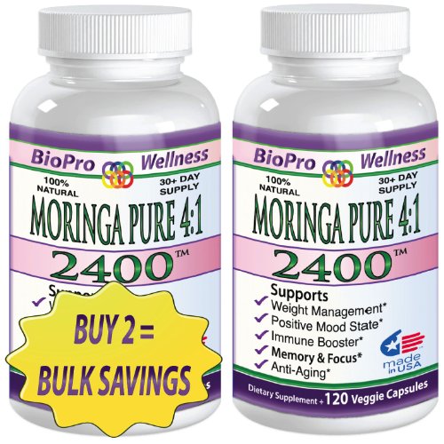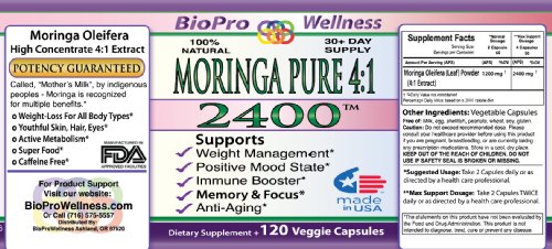 100% Pure Premium Moringa Leaf Powder Capsules, 2400mg Superfood Daily