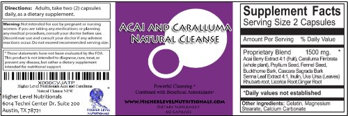 Higher Level Nutritionals Acai and Caralluma Natural Cleanse is an excellent way to cleanse while providing the body with plent of Acai Berrie content which is high in essential fatty acids & omegas that have been found to lower both LDL & HDL cholesterol levels.