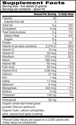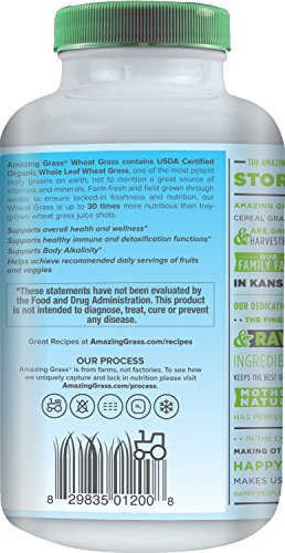 Amazing Grass® Organic Wheat Grass is one of the most potent leafy greens on earth, not to mention a great source of vitamins and minerals. Farm fresh, USDA Certified, our 100% whole-leaf, organic wheat grass naturally detoxifies the body and boost immune systems. Tablets are convenient for individuals who find consuming green drinks difficult, but still want the benefits of wheat grass! Amazing Grass grows our wheat and barley grasses and alfalfa at our family-run farm in Kansas. Our Organic Wheat Grass is harvested at its nutritional peak just prior to the jointing stage, when we cut just the tip of the leaf, which is the most nutrient rich part of the plant. This process ensures we capture and lock-in the potent nutrition that Mother Nature intended and allows our bodies to easily recognize, absorb and assimilate these amazing superfoods. Amazing Grass® is dedicated to the finest and raw ingredients keeping the best of what Mother Nature has perfect. In the end, making others happy makes us happy people!