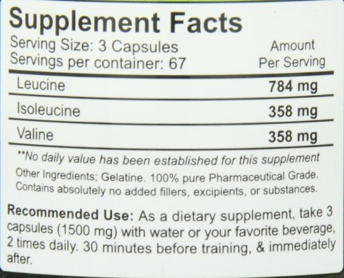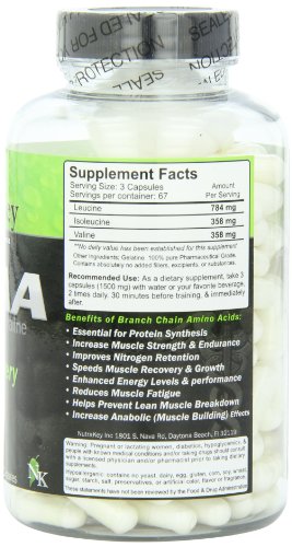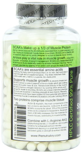 NutraKey products are Pharmaceutical grade ultra-pure for maximum bioavailability. Pure amino acid with no fillers or additives. HPLC verified.Branched-chain amino acid (BCAA) is the name given to three of the eight essential amino acids needed to make protein: leucine, isoleucine and valine. They are called branched-chain because their structure has a ‘branch’ off the main trunk of the molecule. The combination of these three essential amino acids makes up approximately one-third of skeletal muscle in the human body. The body cannot produce BCAA’s on its own, but must obtain through diet or supplementation. In order to get energy, the body can actually break down muscle to get these BCAAs. By supplementing BCAAs during and after your workout, you can prevent muscle tissue breakdown, which occurs as a natural part of metabolism.Almost 1/3 of muscle tissue is composed of BCAA which are needed for muscle growth, the maintenance of muscle tissue and to preserve muscle stores of glycogen. BCAA’s can turn on the main muscle growth pathway in muscle tissue which can increase protein synthesis and help prevent muscle tissue breakdown after strenuous exercise. Each serving of NutraKey ultra-micronized BCAA provides the three free form branched chain amino acids; L-Luecine, L-Valine and L-Isoleucine in the proper 2:1:1 ratio and is available in either pure powder or capsules.Benefits of Branch Chain Amino Acids: Essential for Protein Synthesis Increase Strength & Endurance Improves Nitrogen Retention Speeds Muscle Recovery & Growth Enhanced Energy Levels & performance Reduces Muscle Fatigue Helps Preserve Lean MuscleMuscle tissues are comprised of two proteins, actin and myosin. The main components of the two proteins are leucine, isoleucine, and valine, which are called branched chain amino acid (BCAAs) for their molecular structures. BCAAs accounts for about 35% of the essential amino acids contained in myoproteins. Replenishment of BCAAs increases the raw materials