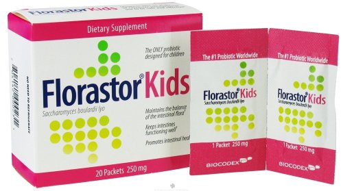 Florastor Kids is a probiotic made of live freeze dried yeast cells of the species Saccharomyces boulardii lyo. The cells look like a powder which is then put into packets and sealed. Each packet of Florastor Kids has 250 mg of Saccharomyces boulardii lyo in it. Probiotics help the good organisms in your body to grow and protect your intestines against bad organisms that can make you unwell. Florastor Kids helps maintain the normal balance of microorganisms in the gut.