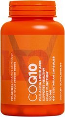 CoQ10 100mg by Mt. Angel Vitamins 60 Capsule CoQ10 100mg 60 Capsule Coenzyme Q10 is a vitamin-like substance that plays an important role in generating cellular energy. The highest concentrations of CoQ10 are found in the heart liver and kidney suggesting an important role for this nutrient. Studies show CoQ10 supports healthy blood pressure and heart function. Supplement Facts Serving Size 1 Vegetarian Capsule Servings Per Container 60 Amount Per Serving Daily Value CoQ10 (Coenzyme Q10) 100 mg Lecithin (from soybean) 100 mg Alpha Lipoic Acid 5 mg Daily Value Not Established Percent Daily Values are based on a 2 000 calorie diet Other Ingredients Deep mined calcium phosphates cellulose vegetable cellulose (preservative-free from capsule shell) magnesium trisilicate silica magnesium carbonate and magnesium stearate. Does Not Contain salt yeast gluten milk egg products sugar starch or preservatives Warnings Keep out of reach of children. As with all dietary supplements consult your heal