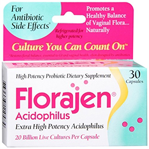 Florajen high potency acidophilus is especially effective for restoring and maintaining a healthy, comfortable balance of vaginal flora. It is also beneficial for overall intestinal health. 20 Billion live cultures per capsule