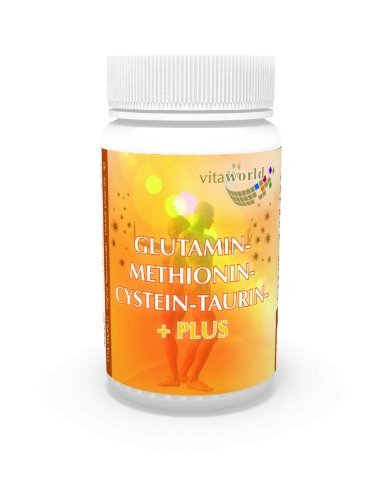 Ingredients: Glutamine, gelatin, taurine, methionine, cysteine, zinc citrate, Vit B6 pyridoxine HCL, release agent: silica and magnesium stearate. Composition (6 capsules): Glutamine 5000mg, Taurine 500mg, Methionine 420mg, Cysteine 120mg, Zinc 10mg, Vitamin B6 6mg.