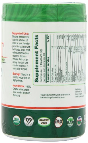 The high concentrations of chlorophyll in our wheat grass powder are evident in its dark green color