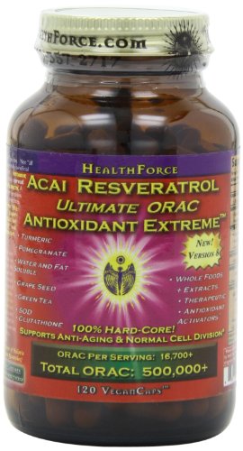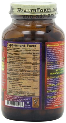 Free radicals wage a war of destruction on your body, contributing to virtually every disease, degeneration, and aging process known to man. Antioxidant Extreme contains the most potent and comprehensive array of free radial scavenging botanicals ever assembled – both fat and water soluble. This product is all whole food extracts, with no isolated or synthetic vitamins or minerals. Health Force Nutritionals originally assembled this formula based on claims of how well various antioxidant ingredients are supposed to work. However, our testing revealed that many of these claims were way off target. We then completely redesigned the formula based on truthful data to create the most potent, comprehensive, highest ORAC (oxygen radical absorbance capacity) per dollar product that could possibly be produced.Goal: To make the most deeply effective and highest ORAC (oxygen radical absorbance capacity) antioxidant product (both water And fat soluble) with benefits far beyond just ORAC. Period. That goal is what this 6th evolution of Antioxidant Extreme is all about. Free radicals wage a war of destruction on your DNA, contributing to virtually every disease, degenerative and aging process known. So many products tout benefits but simply do Not contain the actually effective botanicals, or quantities of them, to be effective. May formulators are ignorant of this, while many other do it knowingly. Either way, integrity issues come up. Antioxidant Extreme allows you to actually achieve the benefits that research shows these amazing nutritional substances can provide. The supportive Herbal Antioxidant Activators contained herein are extremely potent antioxidants themselves and also significantly increase the absorption and effectiveness of the other botanicals. This glass bottle with plastisol-lined metal lid, VeganCaps and oxygen absorber prevents oxidation and preserves the antioxidant properties.