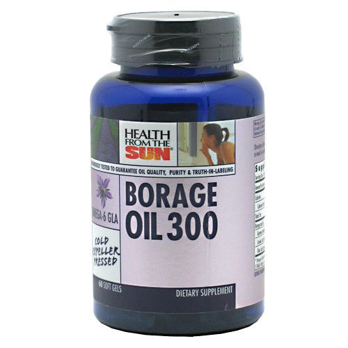 Dietary Supplement. Promotes healthy skin & flexible joints. Health From The Sun Borage Oil 300 naturally supplies 300 mg of the nutritionally important omega-6 fatty acid Gamma Linolenic Acid [GLA] per capsule. It is a convenient and cost-effective way to get the benefits of Borage Oil. Borage Oil 300 is extracted from the highest quality borage seeds using the expeller-press method, without the chemical solvent hexane. Independently tested to guarantee purity and truth-in-labeling. (This statement has not been evaluated by the Food and Drug Administration. This product is not intended to diagnose, treat, cure or prevent any disease.)