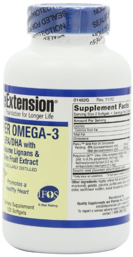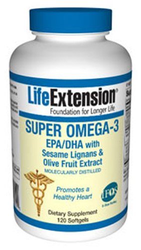 Life Extension Super Omega-3 EPA/DHA with Seasame Lignans and Olive Fruit Extract, 120 Softgels