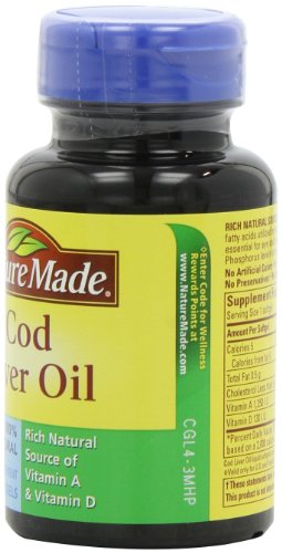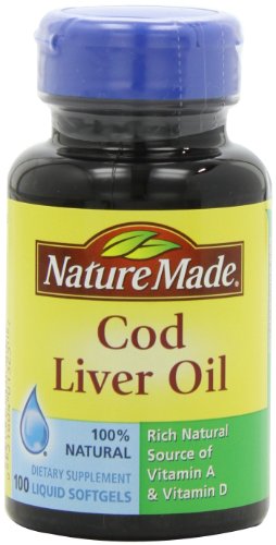 Pack of six bottles, each bottle containing 100 immune system strengthening cod liver oil soft gels with Vitamin A and D (600 total soft gels)