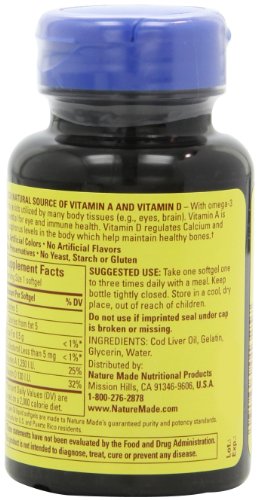 Contains essential fatty acid Omega-3 to regulate bodily systems; contains 25% RDA of Vitamin A and 32% of Vitamin D per softcell serving