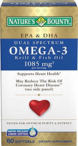Dual spectrum Omega-3 with krill oil provides you with heart health support from two great sources of Omega-3, for two kinds of support. The Omega-3 fish oil in this formula is purified to eliminate heavy metal contaminants such as mercury,, PCB’s and dioxins. Krill oil is a perfect counter-part for a dual spectrum Omega-3 supplement. Supports heart health. May reduce the risk of coronary heart disease. Rapid release liquid softgel.
