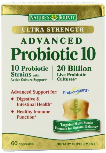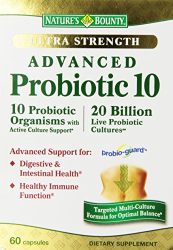 Nature’s bounty advanced probiotic 10 contains 10 distinct naturally derived probiotic strains. These strains play an active role in aiding the body’s natural digestive process. Advanced probiotic 10 also contains 20 billion live probiotic cultures per serving. Probiotics not only support microbial balance of healthy intestinal flora, but assist in the body’s natural digestive process, and contribute to immune function. Probiotics help support the absorption of nutrients.
