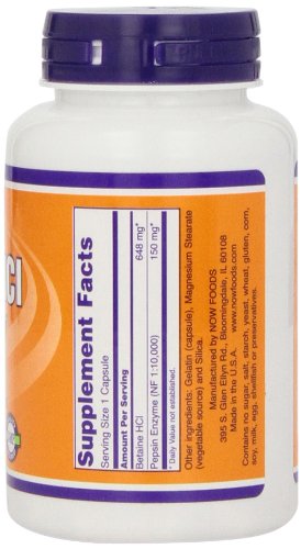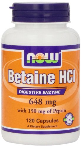 NOW Betaine Hydrochloride with Pepsin is formulated for maximum potency. It combines Betaine Hydrochloride with Pepsin that is standardized to National Formulary requirements. This blend is encapsulated for quick delivery and is a great complement to any dietary regime.