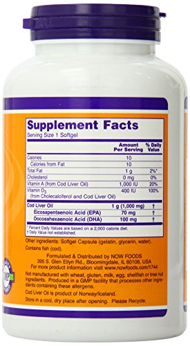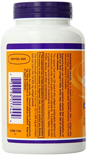 Now Foods Cod Liver Oil Soft Gels, 1000 mg, 180 Count