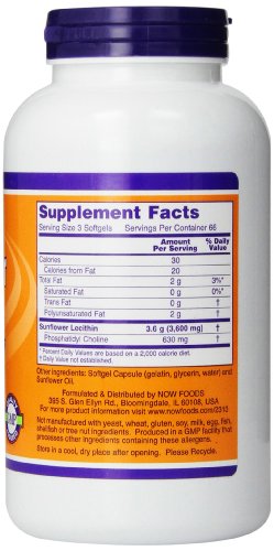 Nervous System Support* 1200 mg Soy-Free, Non-GMO Rich in Phosphatidyl Choline A Dietary Supplement NOW® Sunflower Lecithin Softgels are Non-GMO and Soy-Free. They are also rich in Phosphatidyl Choline, which comprises a major portion of our brain and nervous system. In addition, Sunflower Lecithin is naturally rich in Phosphatidyl Inositol, Phosphatidyl Ethanolamine, and is a source of essential fatty acids. Lecithin aids in emulsifying fats, enabling them to be dispersed in water.*