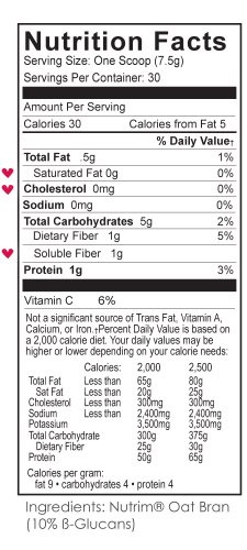Add heart healthy, cholesterol lowering oat Beta-glucans to any food or drink with Nutrim®! Nutrim® is the 100% natural oat B-Glucan super-food developed by the USDA. Nutrim®’s unique processing unleashes oat Beta-Glucan from the tough oat cell wall making it more available to the body. It is rich in oat Beta-Glucans, a powerful oat component recognized by the FDA to help lower cholesterol naturally. The Nutrim® Success Kit is specifically designed to help users learn something new about cholesterol, be honest about recording habits and meet healthy goals. The Nutrim® Success Kit Includes: One month supply of Nutrim® (60 Servings) The NEW Lower Cholesterol Naturally: 30 Day Guide to Success which includes Cholesterol 101 – 29 Cholesterol Fighting Foods Your 10 Year Risk for Heart Disease Daily Success Tracking Chart Everything you need to begin your journey toward lowering cholesterol naturally. Free Shipping Canister Net Weight: 2 Canisters, Each 225g (8 oz) Servings: 60