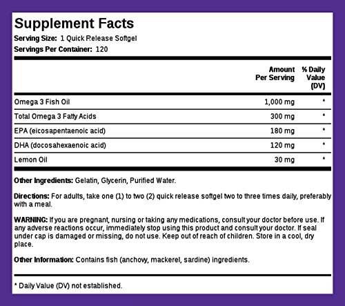 Piping Rock Omega-3 Fish Oil unleashes whole-life nutritional benefits for peak vitality! Famous for promoting free-flowing circulation, healthy blood vessels, stable heart rhythm and overall heart health, Omega-3s are sadly deficient in American diets.** Our purified Omega-3 Fish Oil, sourced from cold-water fish, delivers 1000 mg of superior-quality nutrition in each lemon-flavored softgel. Beyond cardiovascular health, fish oil promotes joint flexibility, strong bones, peak energy, eye health, cognitive function and healthy mood.** Be sure to tell your friends and family about the amazing value in Piping Rock Omega-3 Fish Oil 1000 mg!