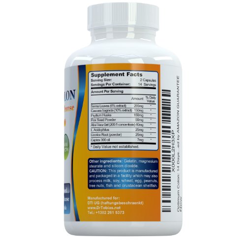 ADVANCED COLON CLEANSE FORMULA WITH HERBAL, NATURAL INGREDIENTS: The Advance Colon Cleanse Formula does not only provide you with effective natural laxatives, fiber, and herbs which help calm the intestinal lining. It also supports your body with Lactobacillus Acidophilus to help promote healthy levels of bacteria in the intestinal tract. Senna, Cascara Sagrada, Licorice and Aloe vera are the herbs in the formula. Senna and Cascara Sagrada are known for their laxative ability. Aloe vera is a colon cleansing herb as well as a liver cleansing herb. The fibers psyllium husks and flax seed powder provide a little extra bulk for the old fecal matter to be moved out of the colon. Lactobacillus acidophilus is a probiotic bacteria in this formula and it acts to restore the proper flora in the intestines. This product is taken occasionally for gently enhancing movements or for colon cleansing reasons, as a 14-day cleanse at the dosage of two capsules daily.