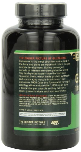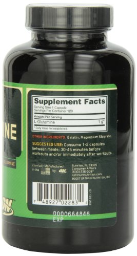 Optimum Nutrition Glutamine Caps contains glutamine which is the most abundant amino acid in the body, comprising more than 60% of the free amino acid pool in skeletal muscle and greater than 20% of total circulating amino acids. Supplemental L-Glutamine may help reduce muscle soreness and rebuild muscle tissue. Glutamine Caps are formulated for rapid disintegration and maximum absorption. Each capsule provides 1000mg (1g) of pure L-Glutamine.
