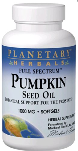 Full Spectrum Pumpkin Seed Oil — 1000 mg by Planetary Herbals 180 Softgel Full Spectrum Pumpkin Seed Oil – 1000 mg 180 Softgel Pumpkin seeds have been used historically to provide nourishing support to the prostate. They are rich in zinc which is vital for normal prostate function. Unlike many other pumpkin seed oil supplements Planetary Herbals Full Spectrum Pumpkin Seed Oil is cold-pressed without the use of toxic chemical solvents. Botanical Support for the Prostate Suggested Use As a dietary supplement Take 1 to 2 softgels 2 to 3 times daily. – Or as directed by your healthcare professional. Supplement Facts Amount Per Serving Daily Value Calories 20 Calories From Fat 20 Total Fat 2 g 3 Saturated Fat 2 g 3 Monounsaturated Fat 0.5 g Polyunsaturated Fat 1 g Protein 1 g 2 Pumpkin Seed Oil 2 g Percent Daily Values are based on a 2 000 calorie diet Other Ingredients Gelatin glycerin and purified water. Does Not Contain If you are pregnant may become pregnant or breastfeeding consult y