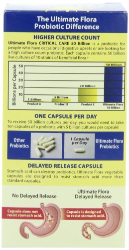 Ultimate Flora Critical Care 50 Billion is formulated for people with troublesome digestive tracts who experience occasional constipation, gas and bloating, or digestive discomfort.