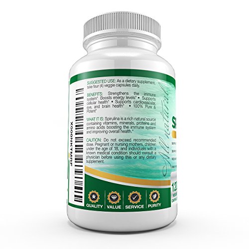 ★WHY US: One of the biggest complaints we hear is about the nasty after taste of Spirulina. So we set out to fix all of that, instead of pressed tablets or powder you pour into a glass, we took pure spirulina and encapulated it into a vegaterian capsule. Get all the benefeits from spirulina without the after taste.★