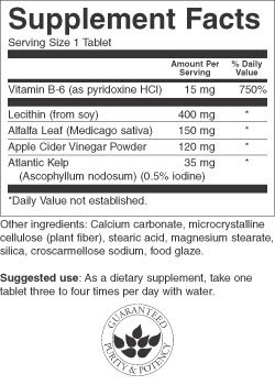 A new, more powerful version of a time-honored diet aid! Swanson Extra Strength Lecithin, Kelp, B-6 & Cider Vinegar is a classic combination that has been popular with dieters for decades as a stimulant-free approach to weight loss. This extra-strength formula ups the concentration of each ingredient for more support than ever before.